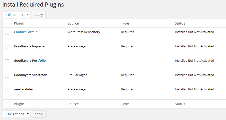 - Go to 'Appearance > Plugins', active Goodlayer plugin again.