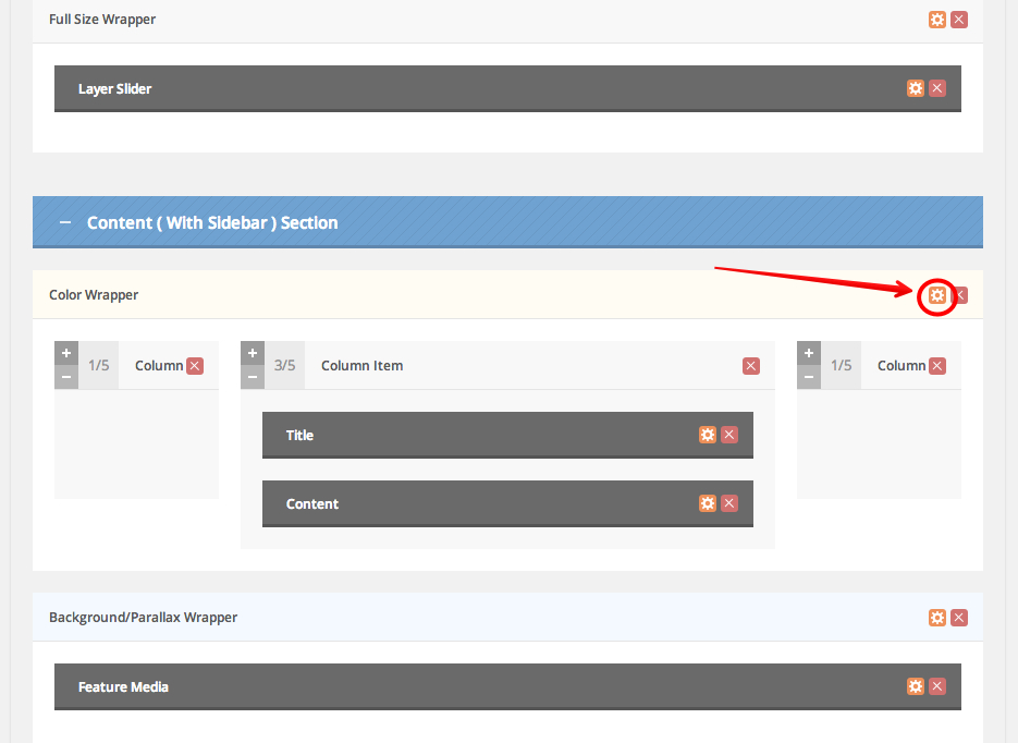 - Column Wrapper : Allows the ability to divide the item to columns. Can put this item inside Background Wrapper and Color Wrapper