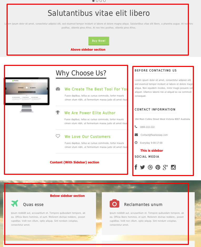 After you create sidebar, you can assign it to any page/post/portfolio you want in the page/post/portfolio option area. You can also set the default sidebar for blog page, archive/search page, woocommerce product and woocommerce single page at the 'Theme option > General' section as well.Page Builder Component