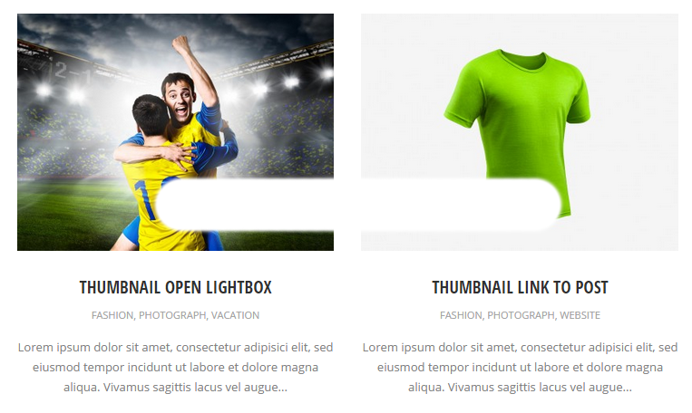 You can select type as 'Featured image', 'Video', 'Slider' and for 'Featured image', you'll be able to open lightbox with image, video or you can also let it link to specific url as well.