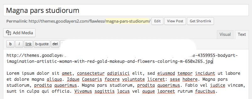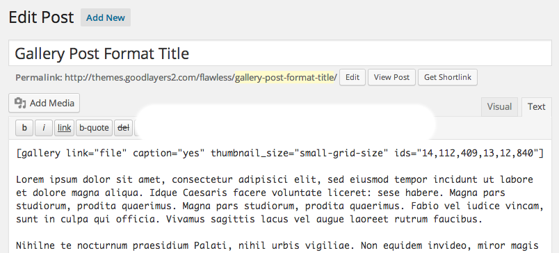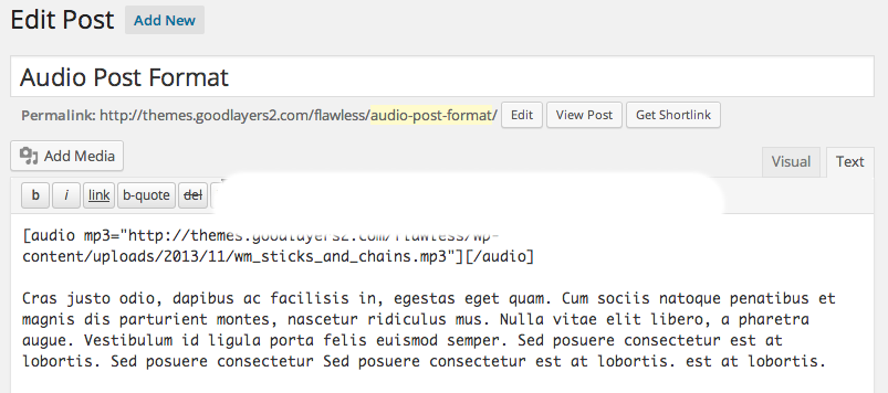 - Audio : Place audio url or shortcode at the top and it'll showing up above post title | screenshot1 | screenshot2