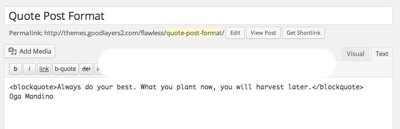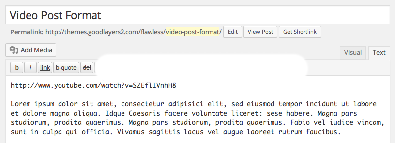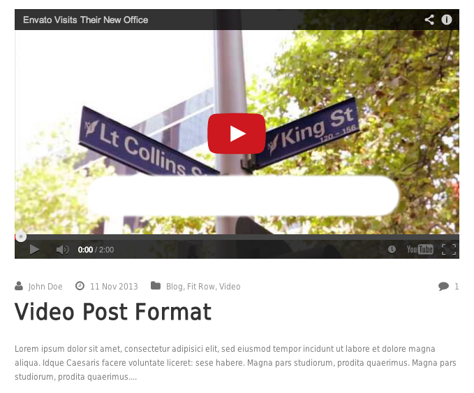 Normally, when you add images, video, audio in to the content of each post, it'll show among the content area. Post format give you an ability to style them in different ways. You can see all post format style at the top of this link on our demo site.Here's the list of how each post format will react when you place different content.