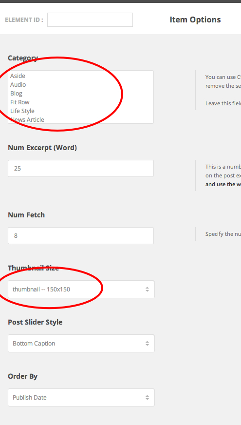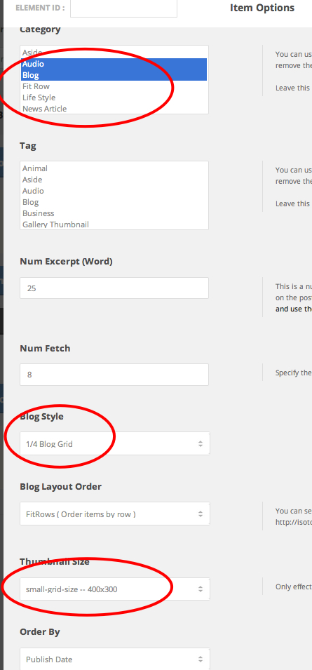 7.) Select category(s), blog layout, thumbnail size and many other options here.