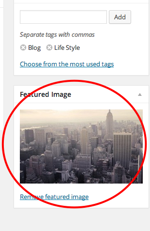 4.) Select featured image for thumbnail.(You may skip this if you use post format,... see below for detail) and publish the post