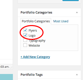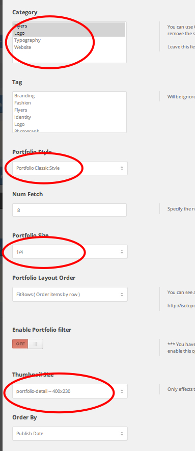 7.) Select category(s), portfolio layout, thumbnail size and many other options here.