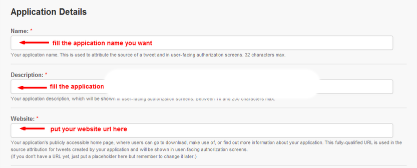 There're 4 fields available when you use twitter widget. You have to follow these following steps to get all twitter access info for this.- Go to https://dev.twitter.com/apps