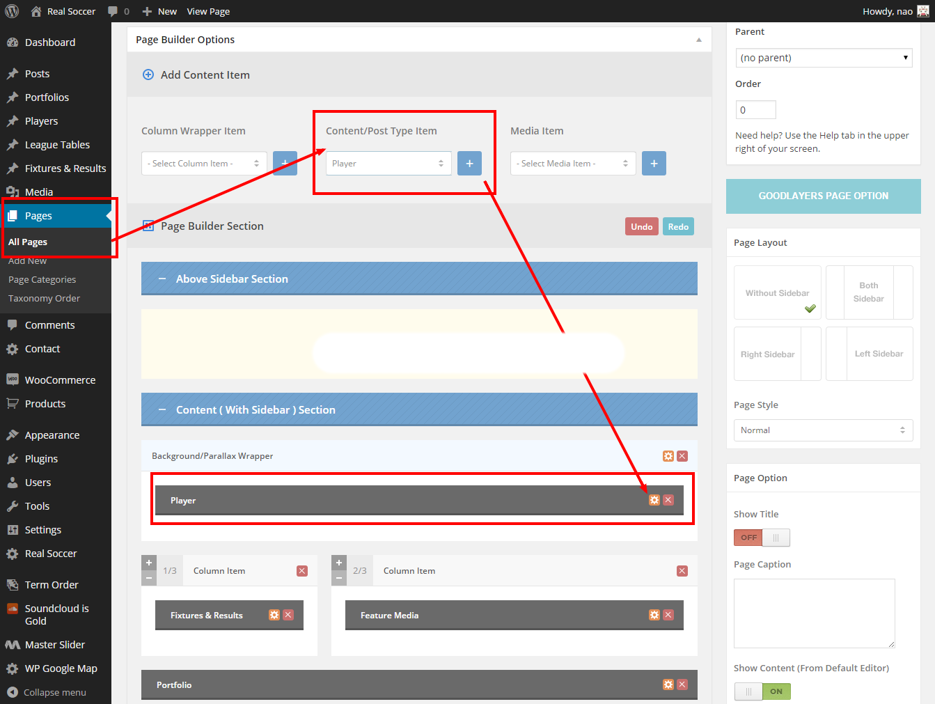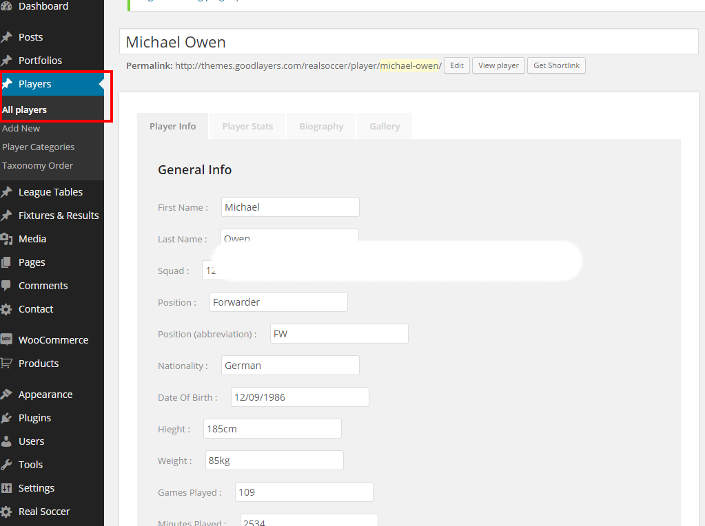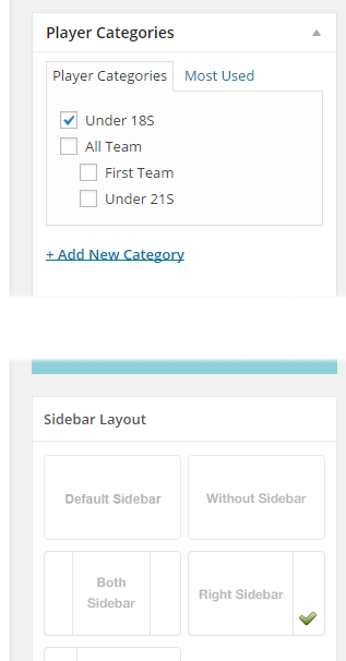 2.) You can assign player category, player avatar ( featured image ) , select sidebar