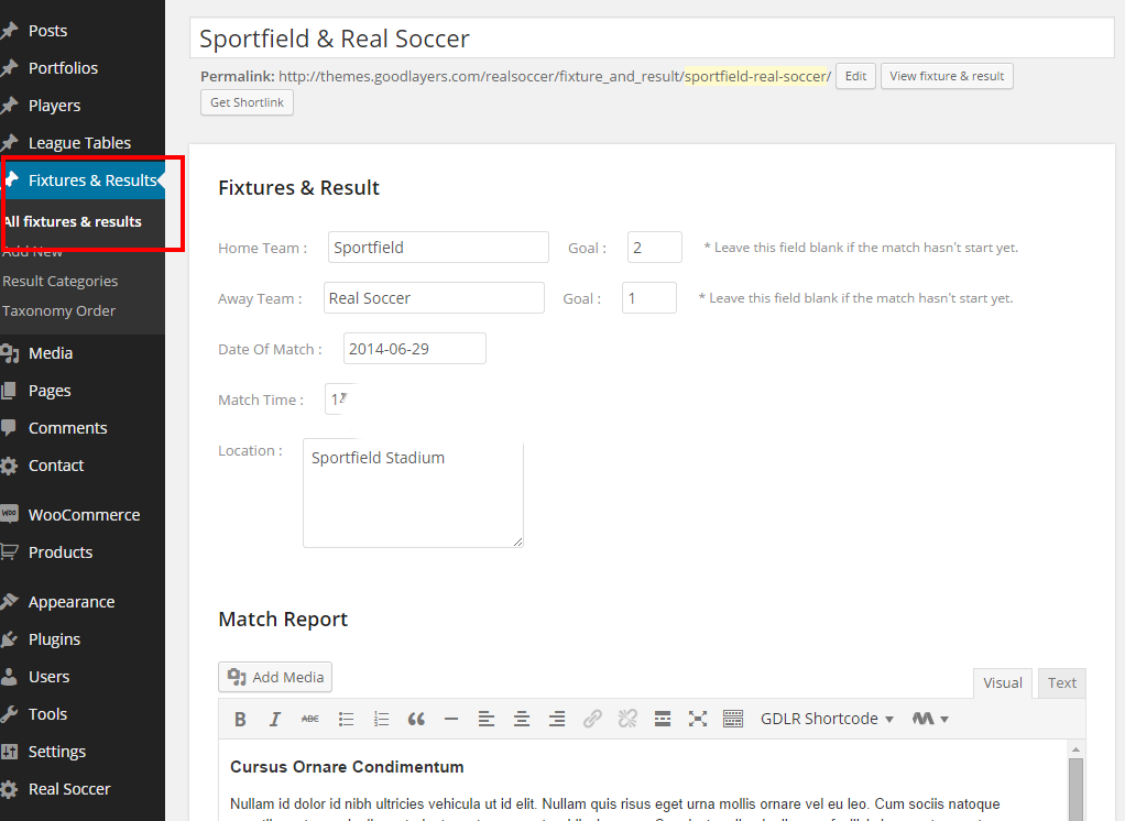 1.) Go to 'Fixtures & Results > Add New' and fill the match information