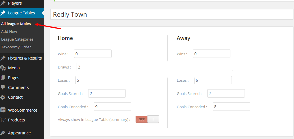 1.) Go to 'Fixtures & Results > Add New' and fill the current team score